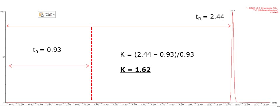 Analytical quality control, performance and method validation guidelines such as SANTE/12682/20192 and Commission Decision 2002/657/EC3 state ‘the minimum acceptable retention time for the analyte(s) should be at least twice the retention time corresponding to the void volume of the column’.