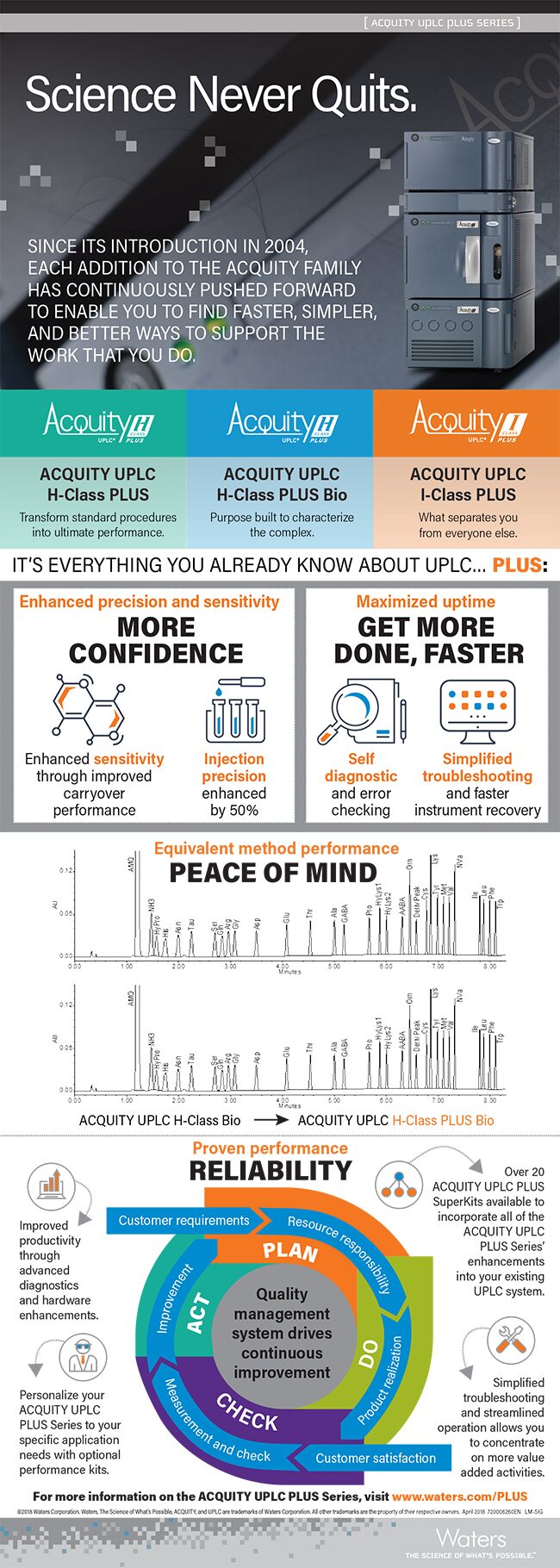 通过接受由客户反馈驱动的持续产品改进理念,我们设计了新的 ACQUITY UPLC H-Class PLUS, H-Class PLUS生物,以及 I-Class PLUS 系统具有无与伦比的灵活性、性能和易用性。