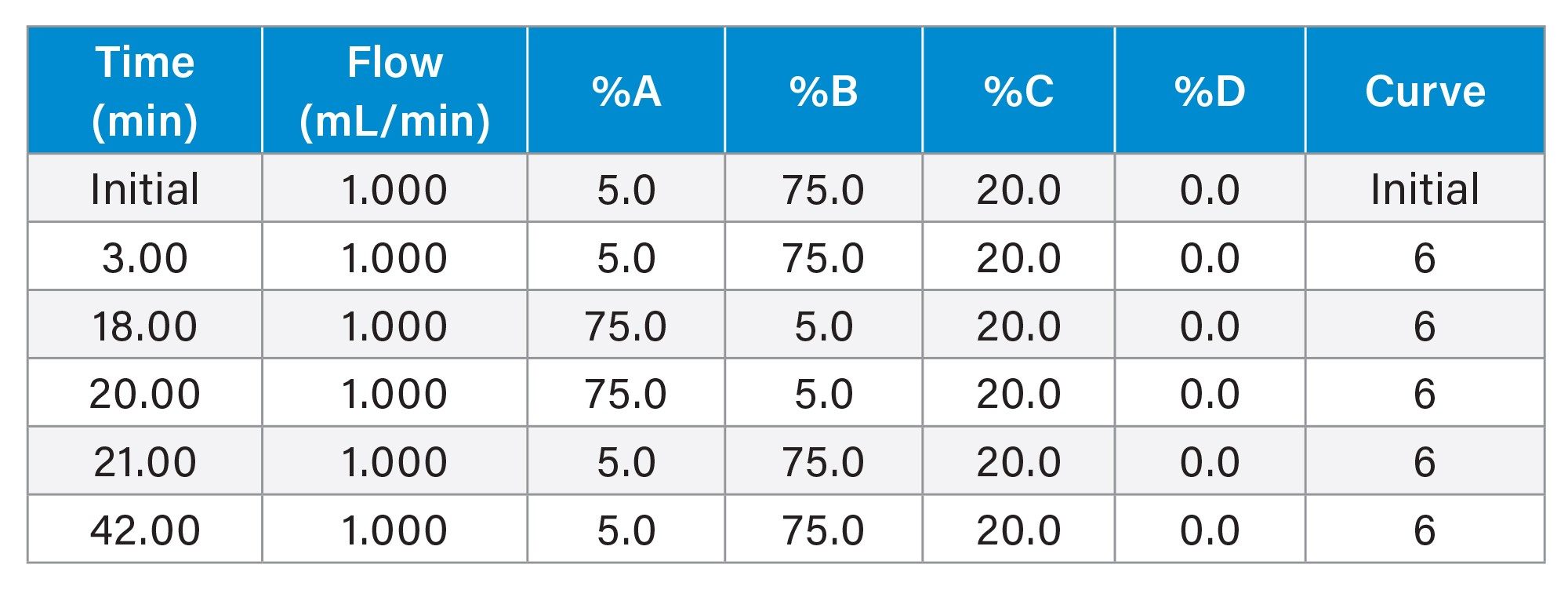 Two vials of Waters MassPREP OST Standard (p/n: 186004135) were reconstituted in 500 µL of 20:80 (v/v) water:acetonitrile to provide 160 pmol of the passivation sample on column.