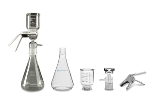 Five component set made of 100% borosilicate glass, assures resistance to even the most aggressive solvents for solvent filtration using 47mm filters