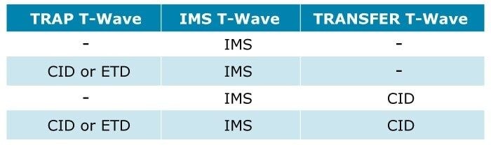 A IMS T-Wave utiliza campos elétricos/pulsos de tensão em movimento não uniformes para empurrar os íons através de um gás tampão neutro. À medida que os íons são conduzidos, eles interagem/colidem com o gás tampão neutro, o que os retarda, fazendo com que íons de diferentes tamanhos, formas, cargas e massas transitem em taxas diferentes.