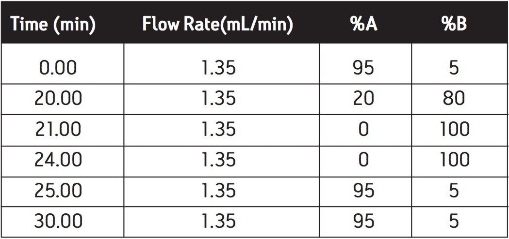 The relationship between time and actual organic mobile phase delivered to the column on the pilot-scale system is established using uracil (an unretained, UV-absorbing compound) in the organic mobile phase (B). The conditions for the system calibration are given below: